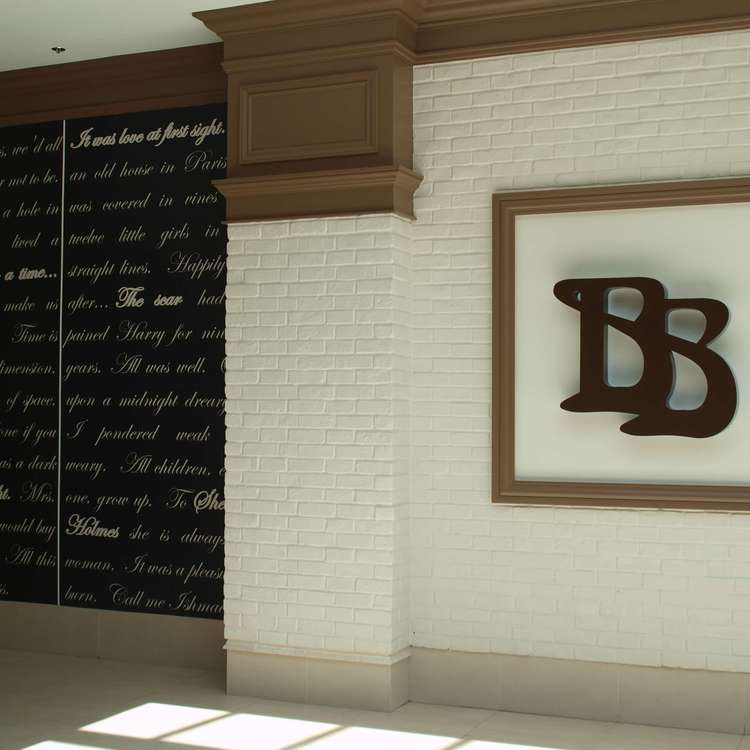 The redesign of Bolen Books brings character, warmth, and personality to this beloved independent bookstore. A white brick façade is framed by the store’s iconic whimsical logo, accented with warm wood tones and rich browns that invite customers inside. On the exterior- within the mall- a high-contrast black-and-white feature wall displays famous literary quotes, creating a visually engaging focal point that draws attention and celebrates the magic of books. The design balances charm and functionality, reflecting the unique story and longstanding presence of Bolen Books in the community.